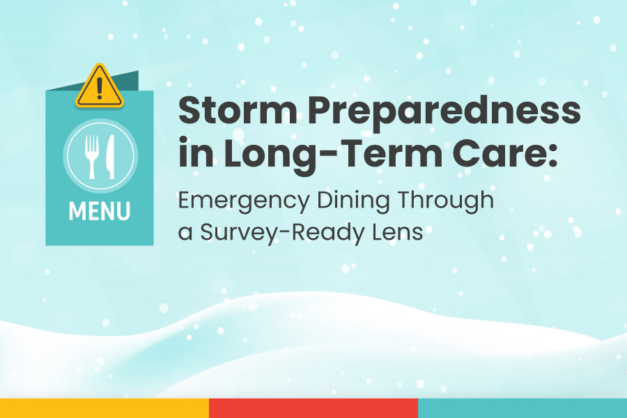 When the weather forecast is calling for severe weather, long-term care communities start preparing for inconvenience – but also for risk. Losing power, water or a disruption in the supply chain can significantly impact food safety, resident safety, and compliance if communities don’t have a clear plan in place. Surveyors expect that communities will show how they maintain safety and dietary requirements for all residents – even during storms.